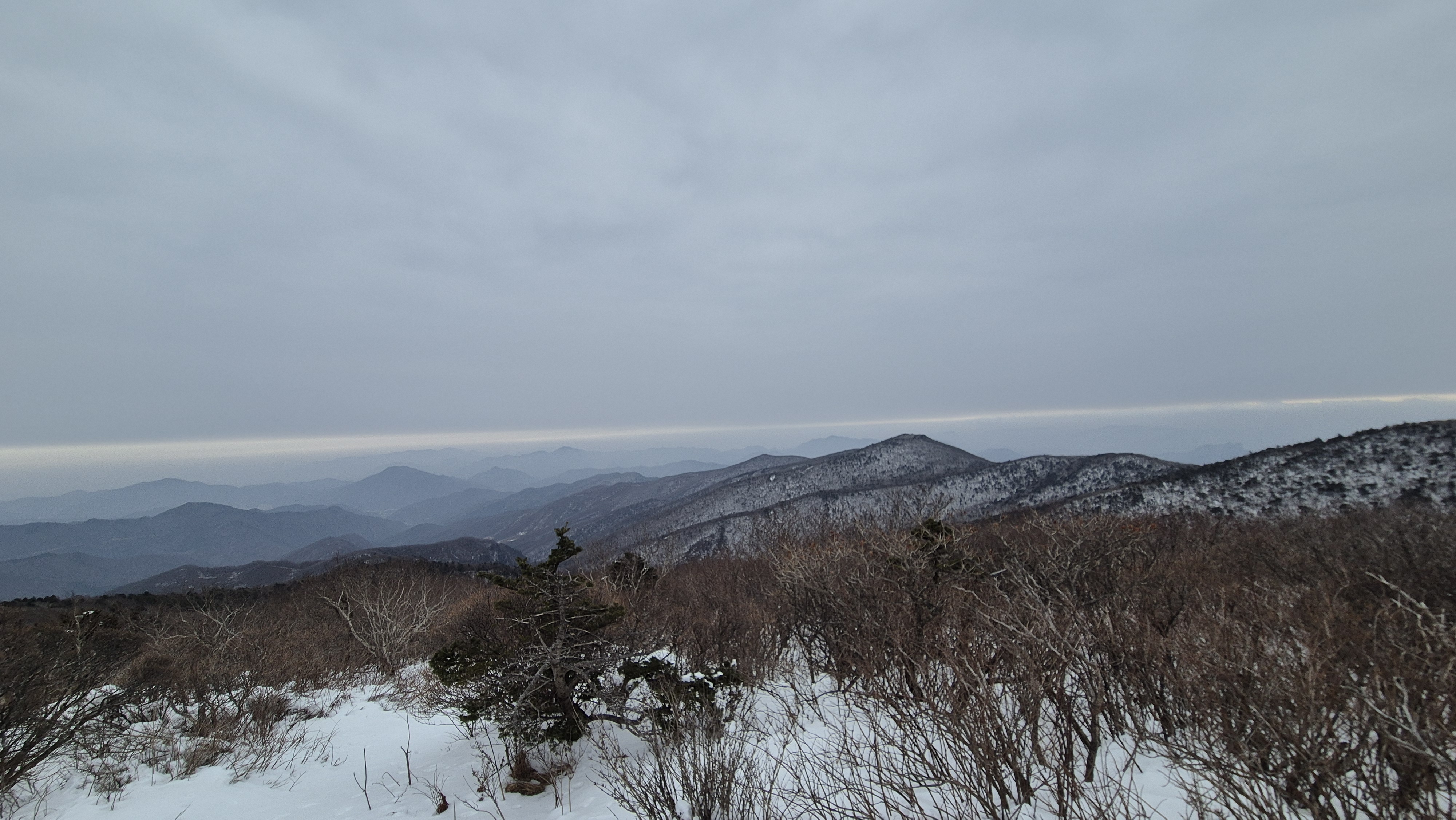 이 길은 백두대간 길이다. 한강과 낙동강 물을 가르며 강원도와 경상남도를 가르는 길이다. 언제나 이곳에 오면 칼바람이 불었다. 내륙에서 불어오든 해양에서 불어오든 무척이나 매서운 바람이었다. 오늘은 바람도 없다. 기온은 차갑지만 바람이 없어 그나마 살을 에는 차가움은 없어 다행이다.
