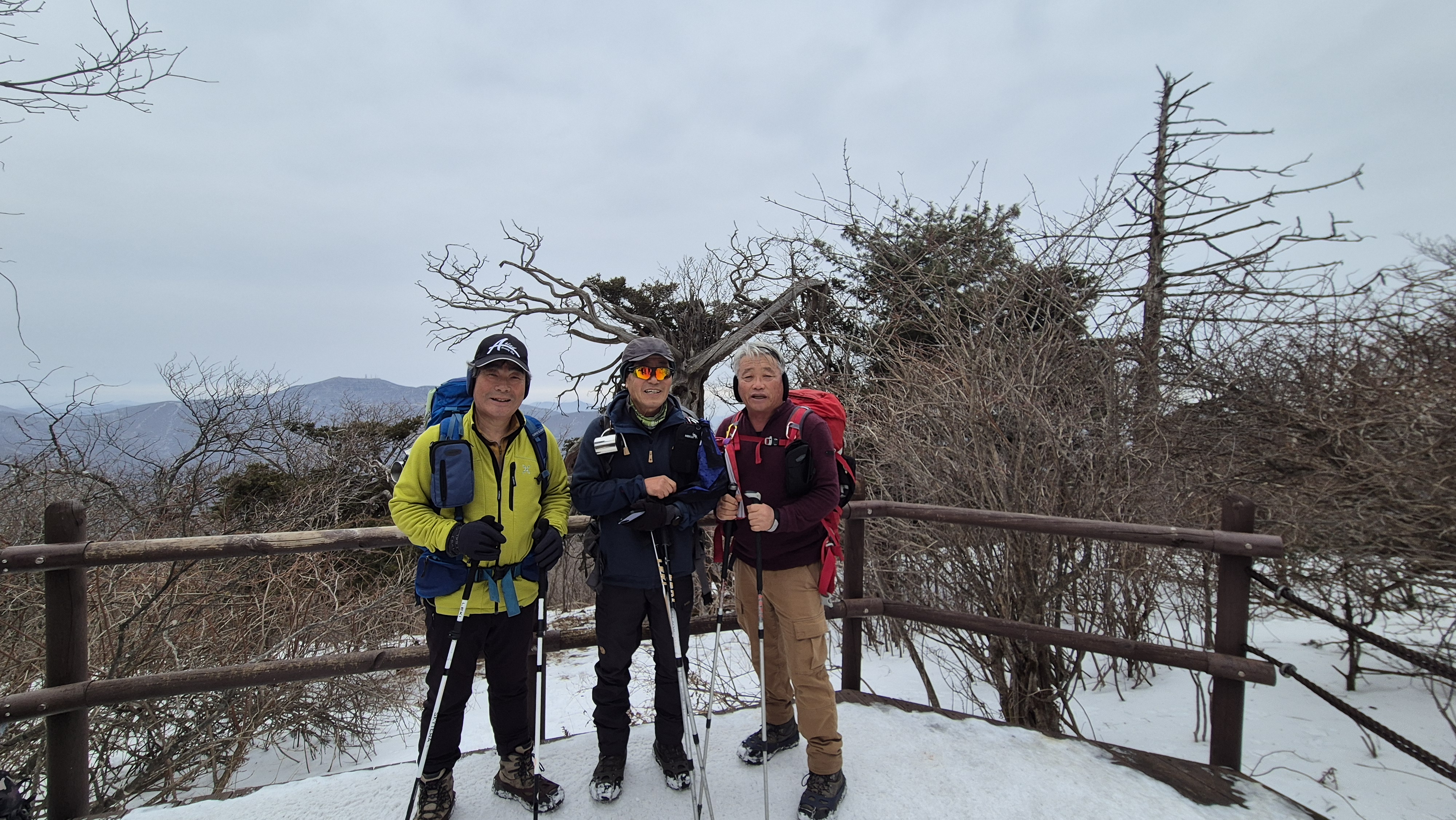 가지에 흰 눈이 쌓인 환상의 태백산 눈꽃 산행을 기대했지만 눈은 내리지 않아 아쉬움으로 남는다.