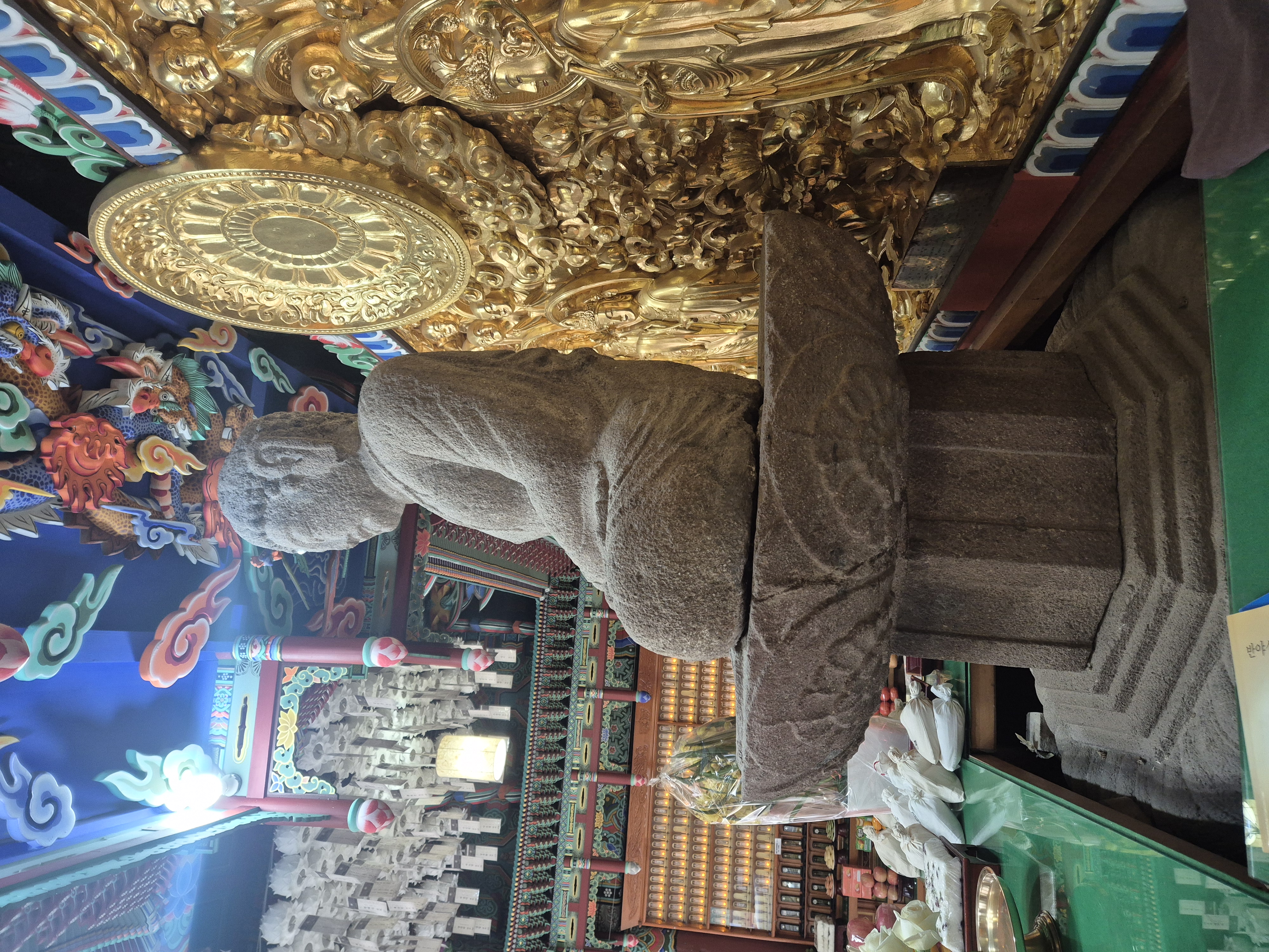 무등산 약사암 석조여래좌상은 약사암 대웅전 중심부처로, 질병을 앓은 모든 중생을 구제한다는 약사불을 형상화한 불상이다.