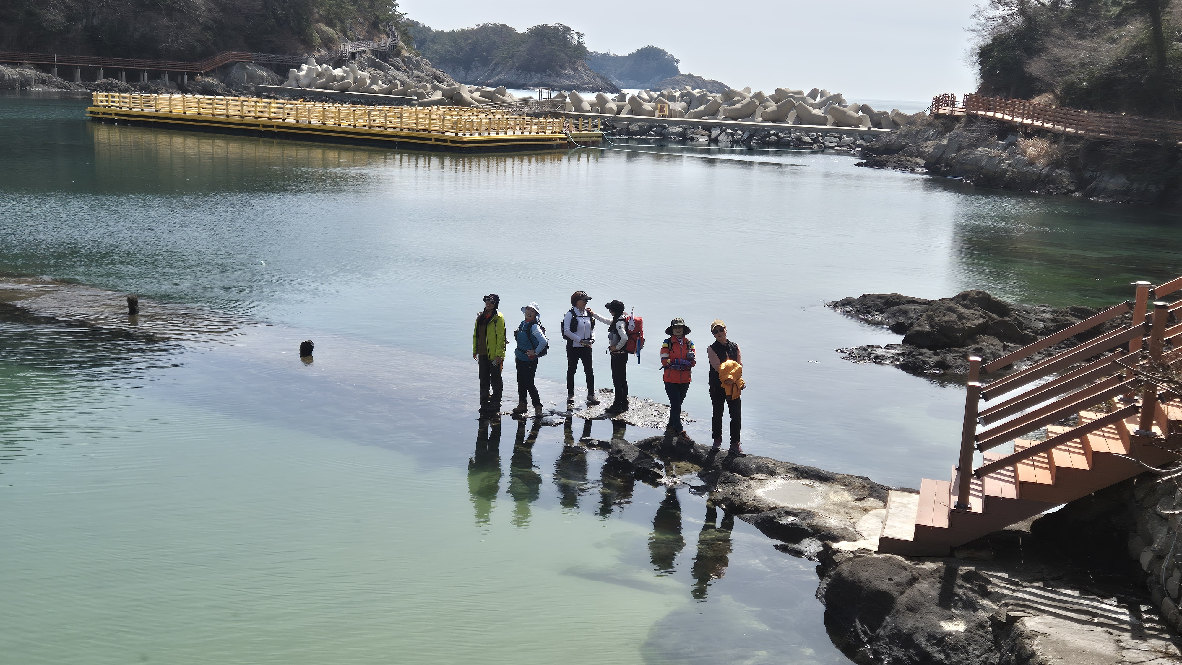 해안 노도마을 쉼터에 도착 섬바래길 탐방 마무리한다.